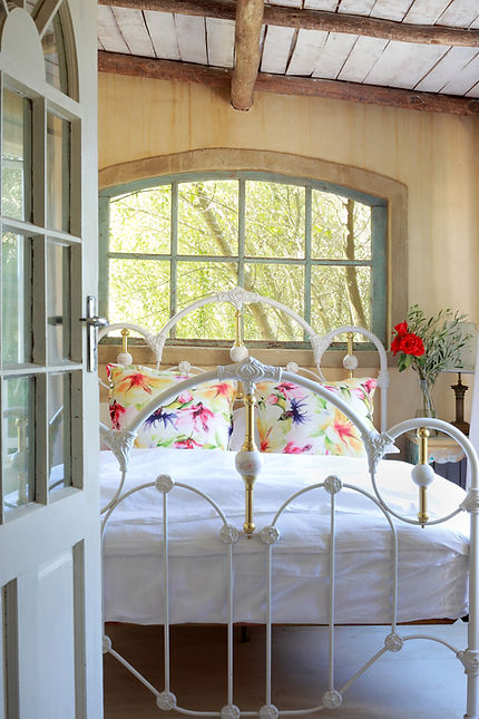 A characterful, low-ceilinged main farmhouse and cottages sleep fourteen in a cluster of bedrooms around the enclosed pool and wood-fired hot tub, making it a great escape for family get-togethers. Inside, our house is lux farm style. You’ll enjoy soft white linen, thick cotton towels, handpicked art, and worn-out Persian carpets.